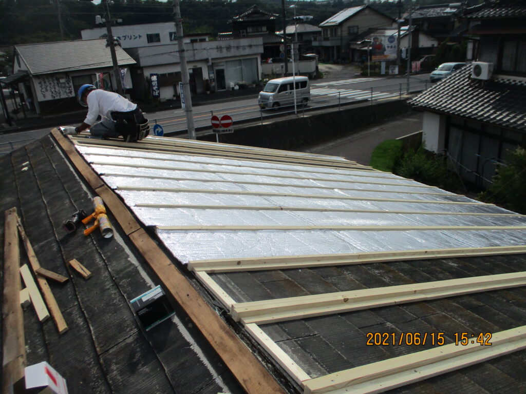 | 工事内容 | 屋根の葺き替え時に遮熱シート(リフレクティックス)を施工します。 |
