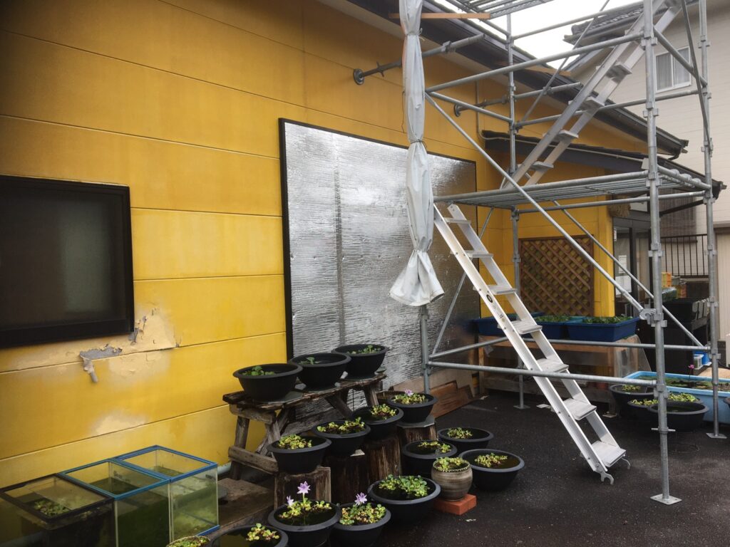 遮熱シート用の下地を施工し、シートを貼っていきます。