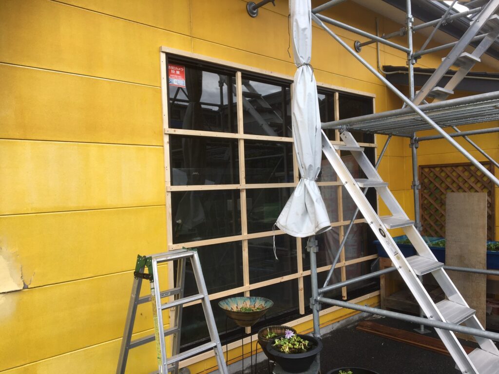 外壁の大きなFIX窓に遮熱シートを貼るため、