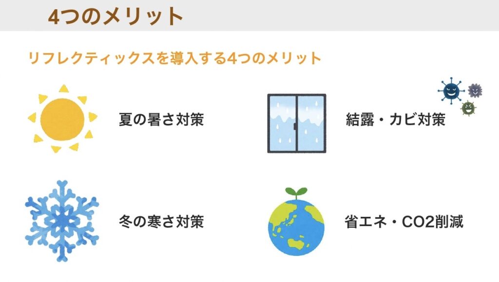 リフレクティックスは「夏涼しく、冬暖かい温熱環境」を実現します。