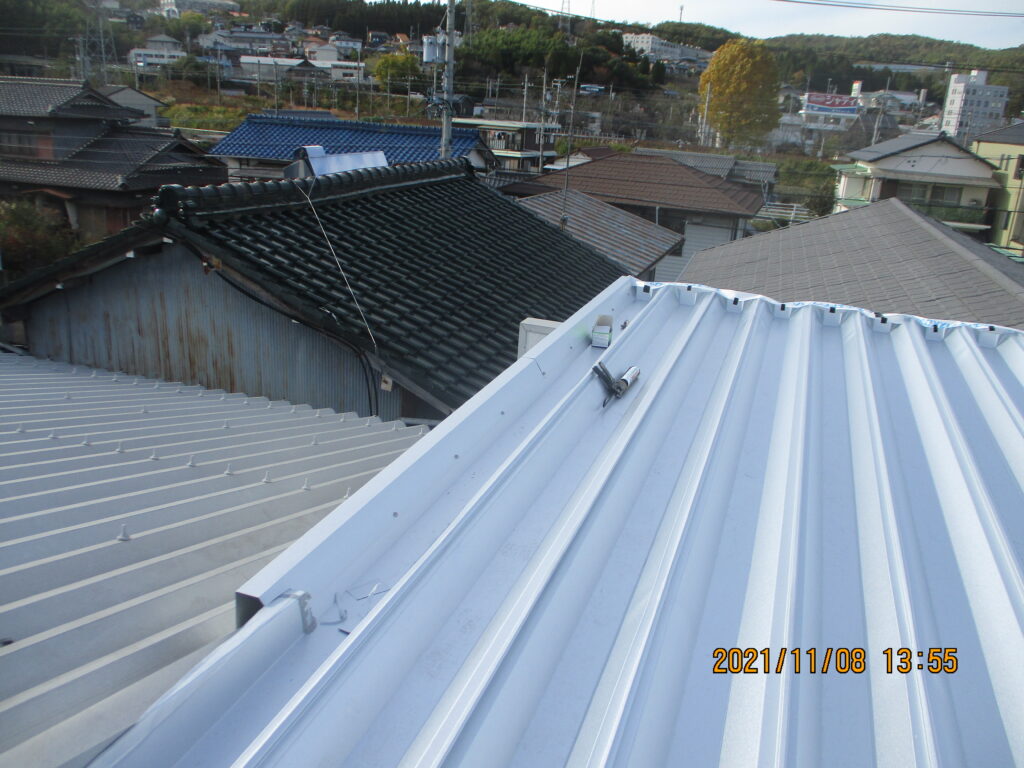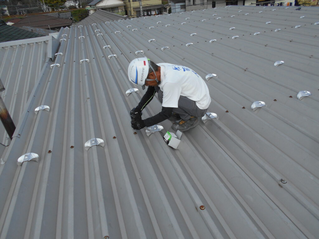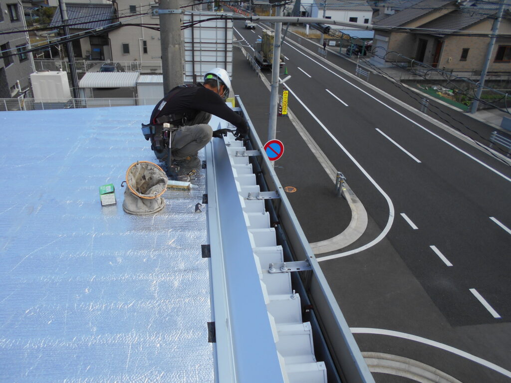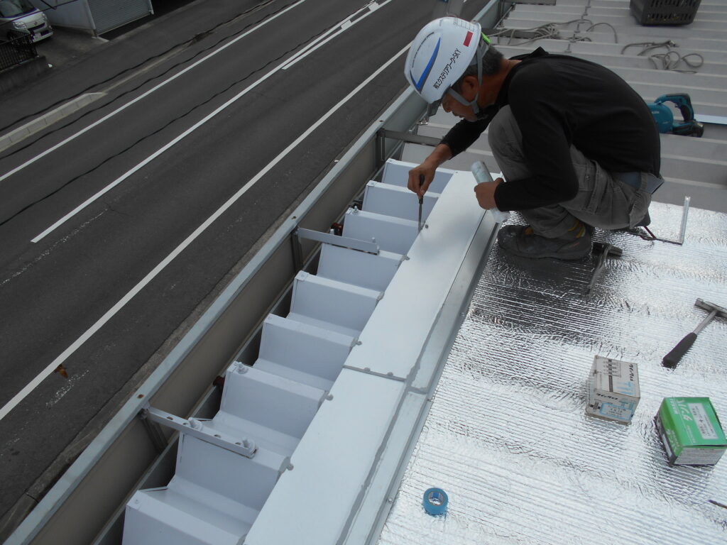 折板葺きの屋根の棟や壁に接する部分に取付けます。