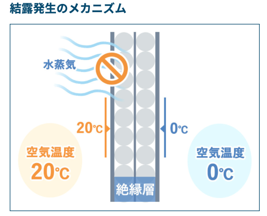 日常、目にすることのない結露を内部結露といい、建物を腐らせる要因になります。