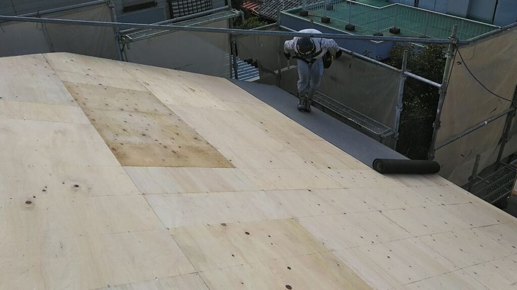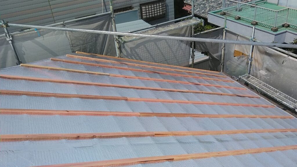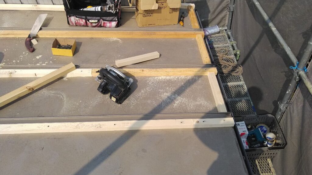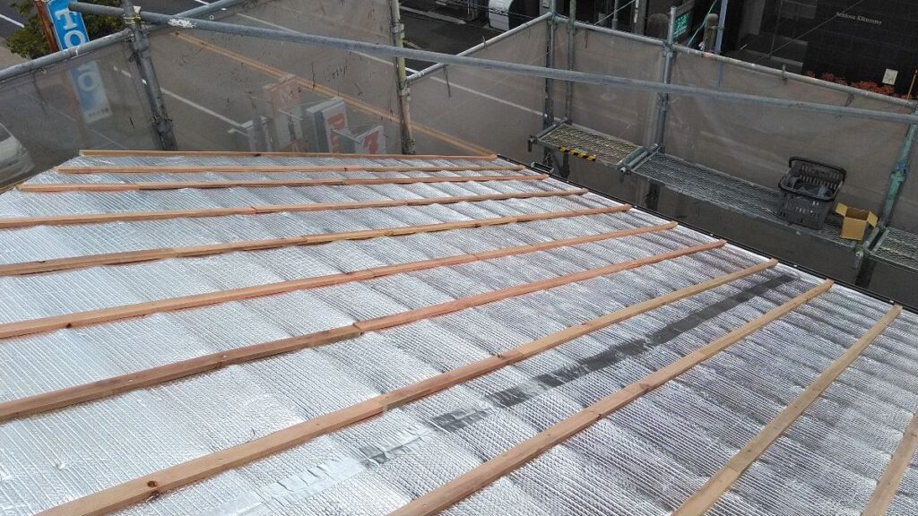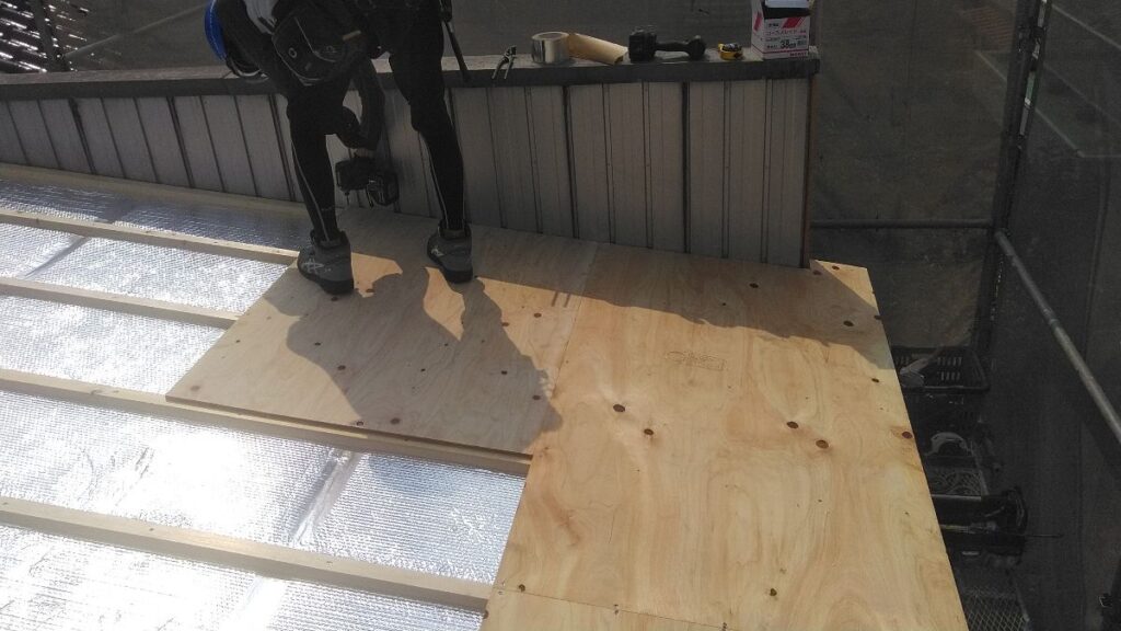 リフレクティックスの上から更に木下地、野地板を張ります。