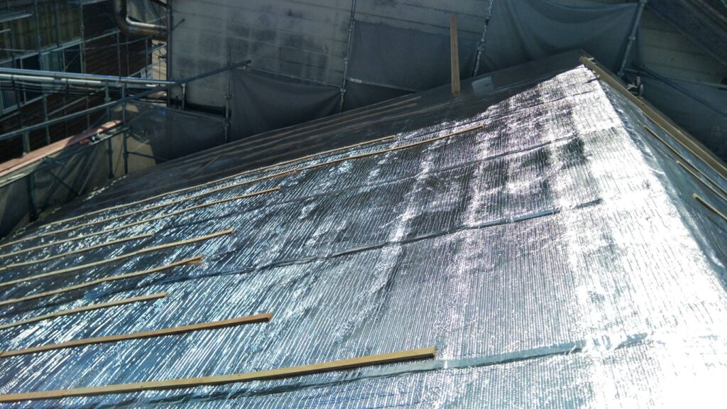 リフレクティックスを全面に張ります。シートのつなぎ目は専用の絶縁テープを貼ります 。