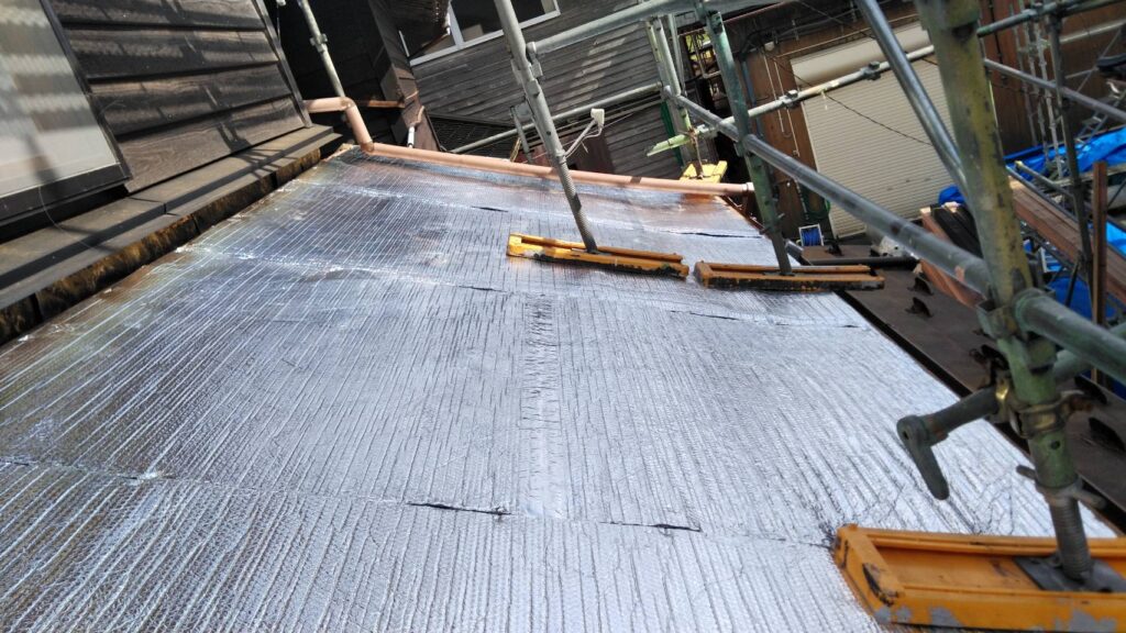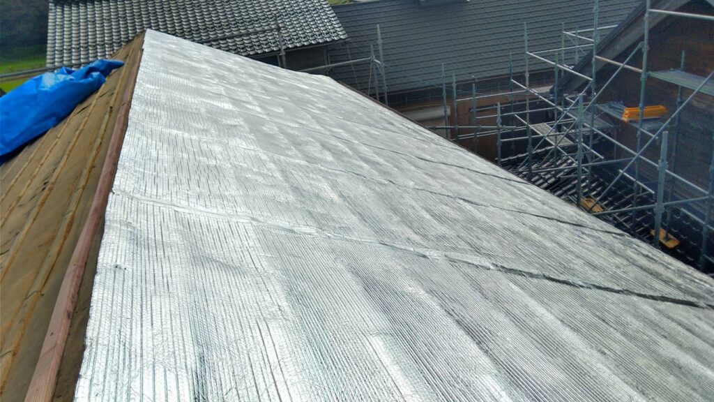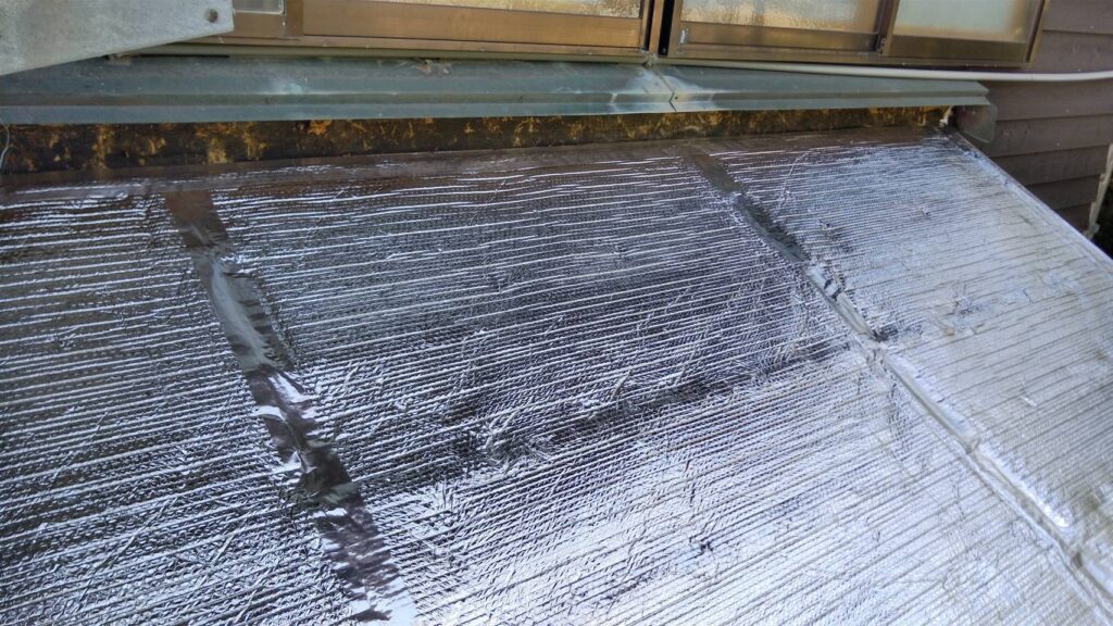 リフレクティックスを張り、シートのつなぎ目は専用の絶縁テープを貼ります。