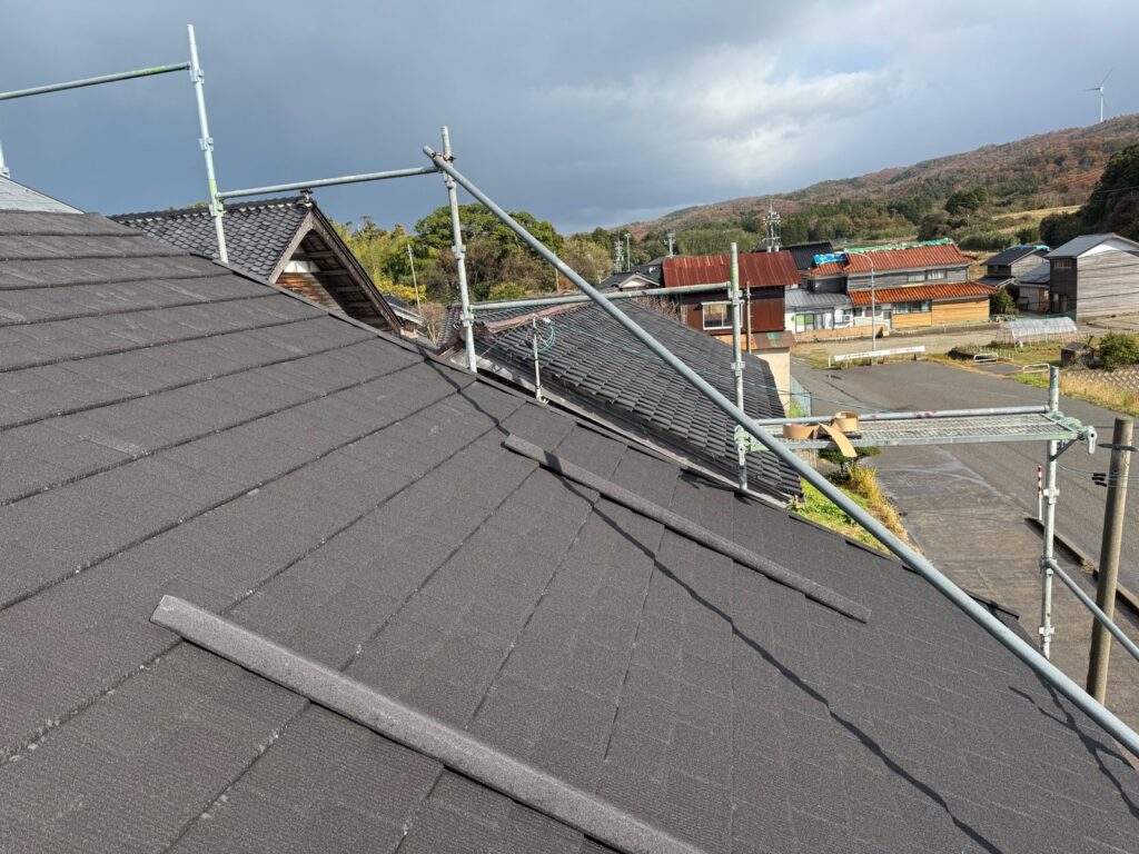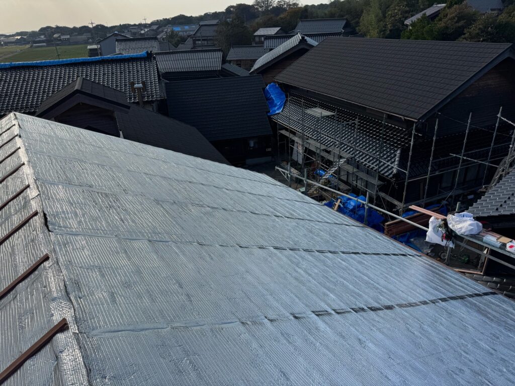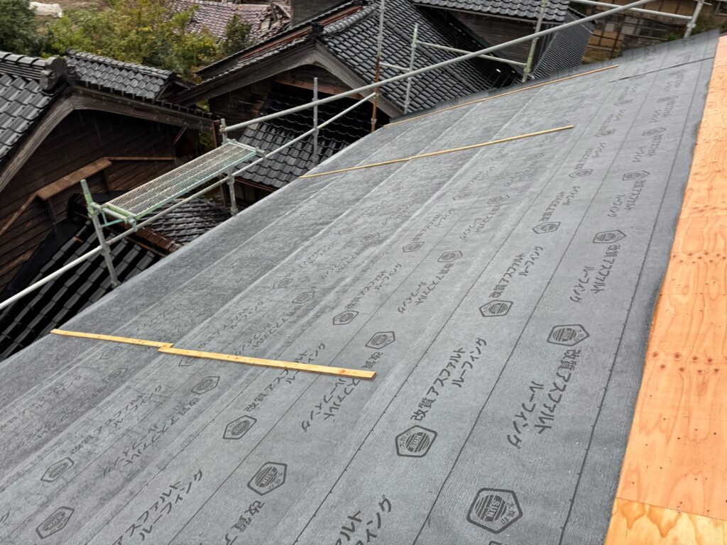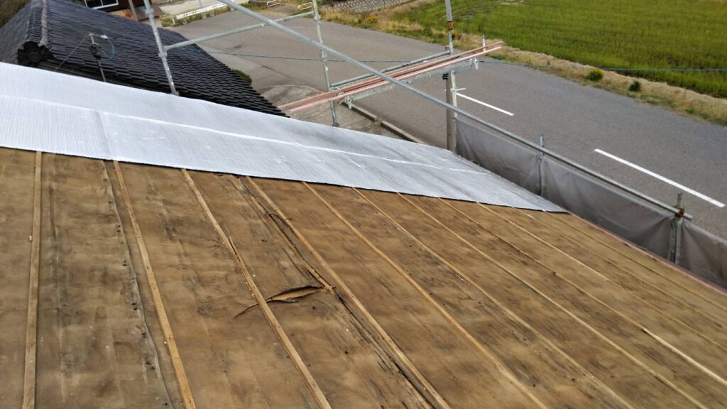 セネターで屋根を葺きます。セネターはメーカー保証30年付き、メンテナンスフリーで耐震性に優れている超軽量屋根材です。